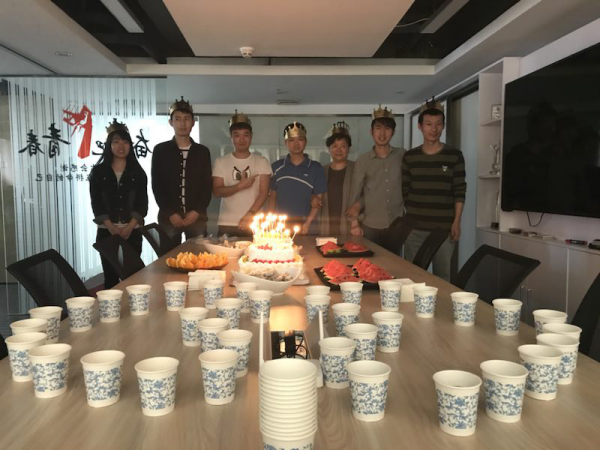 生日會開始前,同事早已將蛋糕、水果拼盤、飲料,以及壽星們的生日皇冠一一準(zhǔn)備好,日常忙碌的辦公室內(nèi)有了一種溫馨幸福的氛圍。