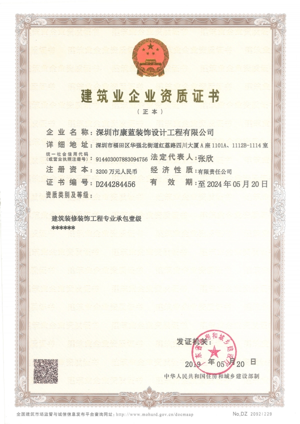 近日,經(jīng)廣東省住房和城鄉(xiāng)建設(shè)廳批準,深圳市康藍科技建設(shè)集團有限公司建筑裝修裝飾工程專業(yè)承包資質(zhì)正式升級為壹級資質(zhì),并新增消防設(shè)施工程專業(yè)承包、電子與智能化工程專業(yè)承包、建筑機電安裝工程專業(yè)承包等資質(zhì)。此次康藍建設(shè)集團資質(zhì)的升級,為公司今后提高市場競爭力、拓展市場提供了有利條件。