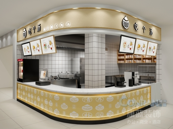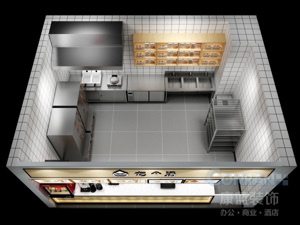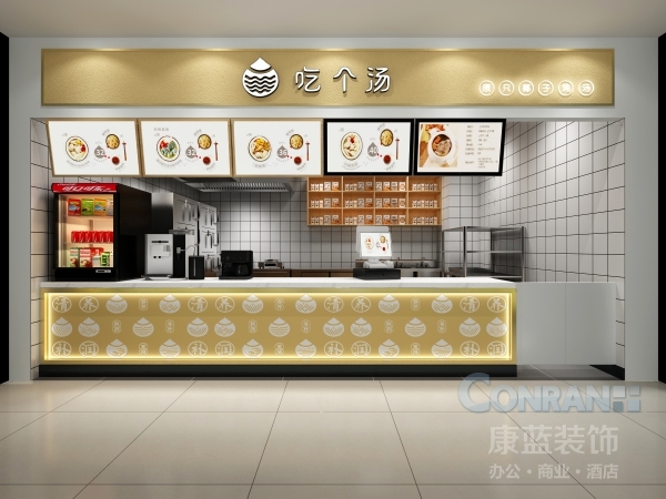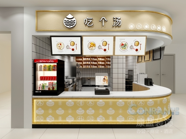另外,廚房與顧客就餐的區(qū)域也應(yīng)該通過設(shè)計來輔助湯品的完美呈現(xiàn)??邓{將吃個湯的廚房打造成為一個半開放式的空間組合,以略帶弧形的兩面打開與顧客交流的空間。并為工作人員留下出口,方便隨時到顧客身邊服務(wù)。